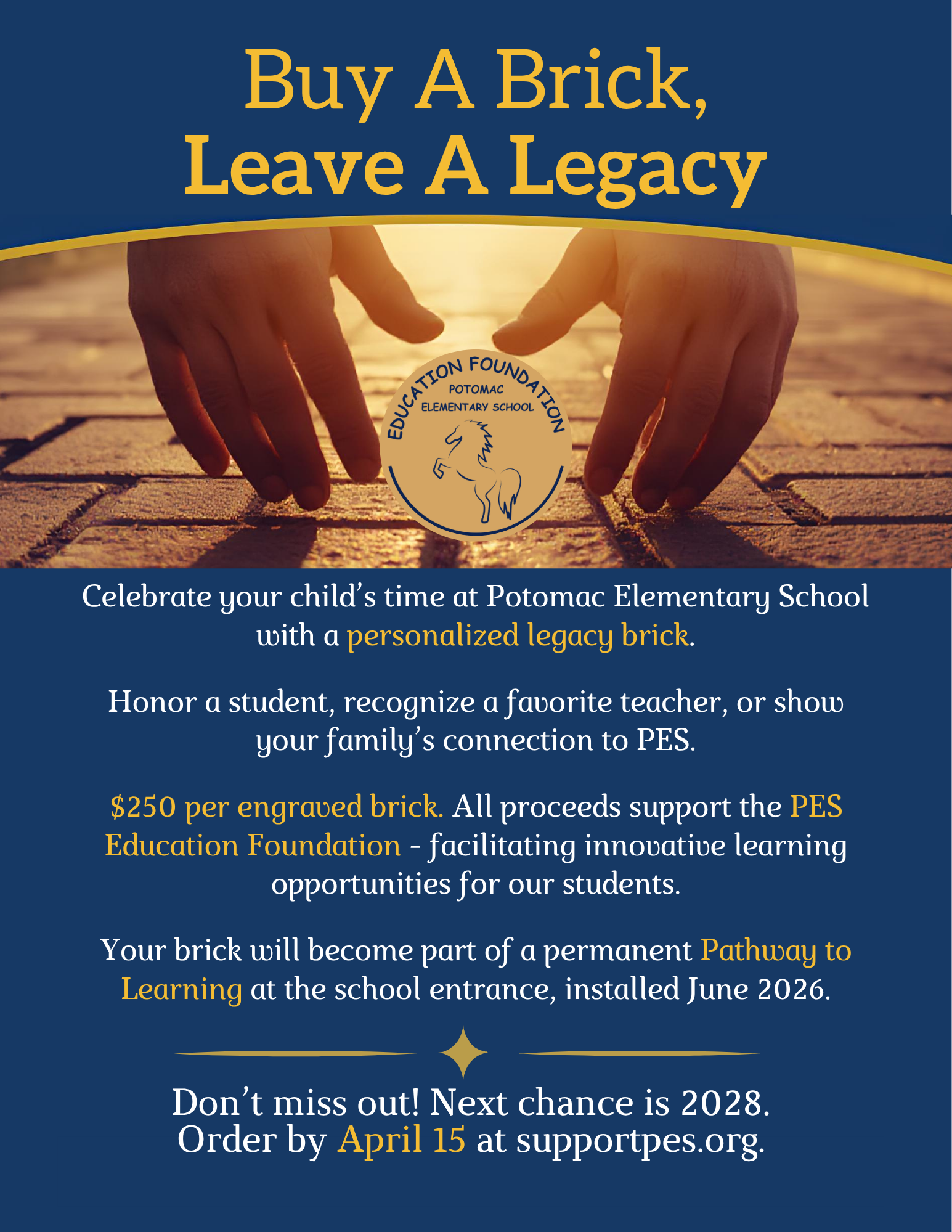 Celebrate your child’s time at Potomac Elementary School with a personalized legacy brick.